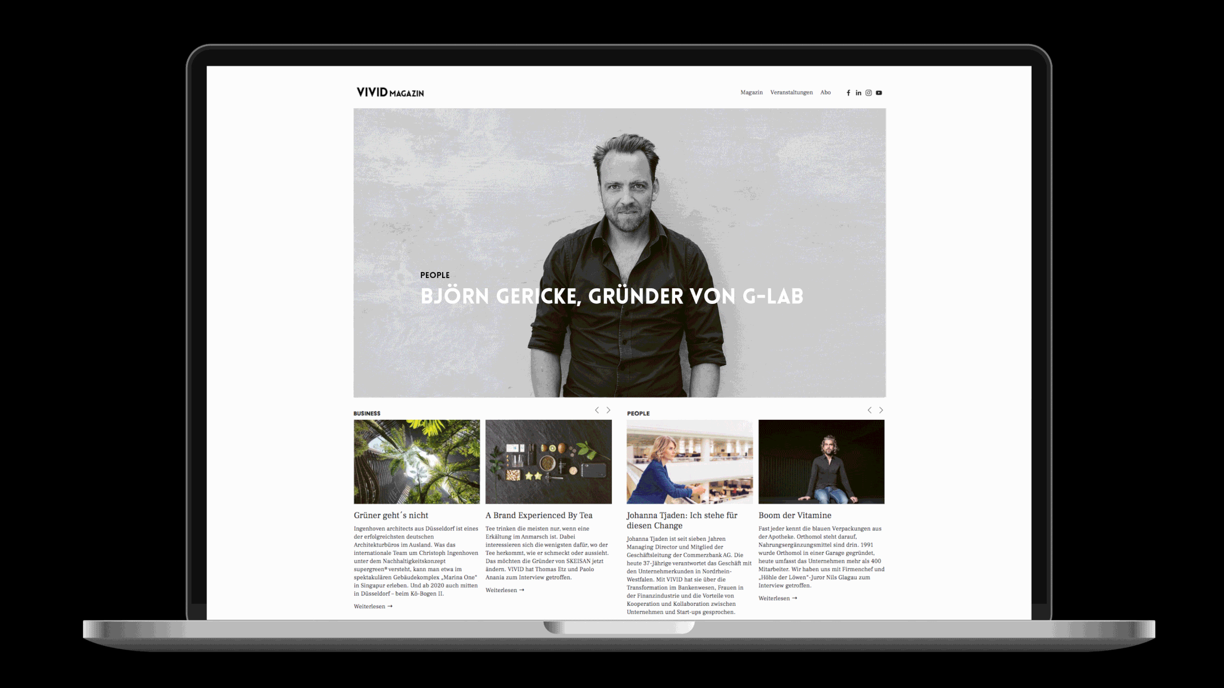 Lösung: VIVID ist ein Online- und Print-Wirtschaftsmagazin für Düsseldorf. Es wird viermal jährlich an Entscheider:innen versendet und ist im Zeitschriftenhandel erhältlich. Geschichten über das Wirtschaftsleben und ihre Macher:innen werden auf rund 70 Seiten redaktionell hochwertig aufbereitet. Eigens produzierte Fotostrecken und ein individueller Collagenstil bilden die gestalterische Klammer des Hefts. Vivid – Passion for Business.